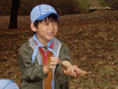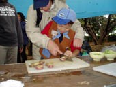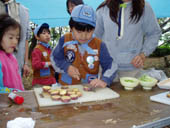 掘れたお芋でさつま汁づくり。上手に切れるかな?