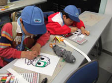 塗り絵でお面づくり