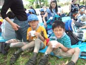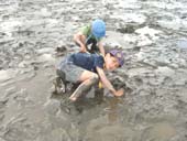 | 公園で休憩。お昼ごはん。 | 再び干潟へGO! | |
