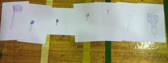 | 第2競技:絵伝言ゲーム 虫取り網がいつの間にかマイクに!?(左→右) | ||